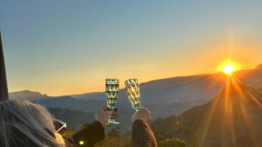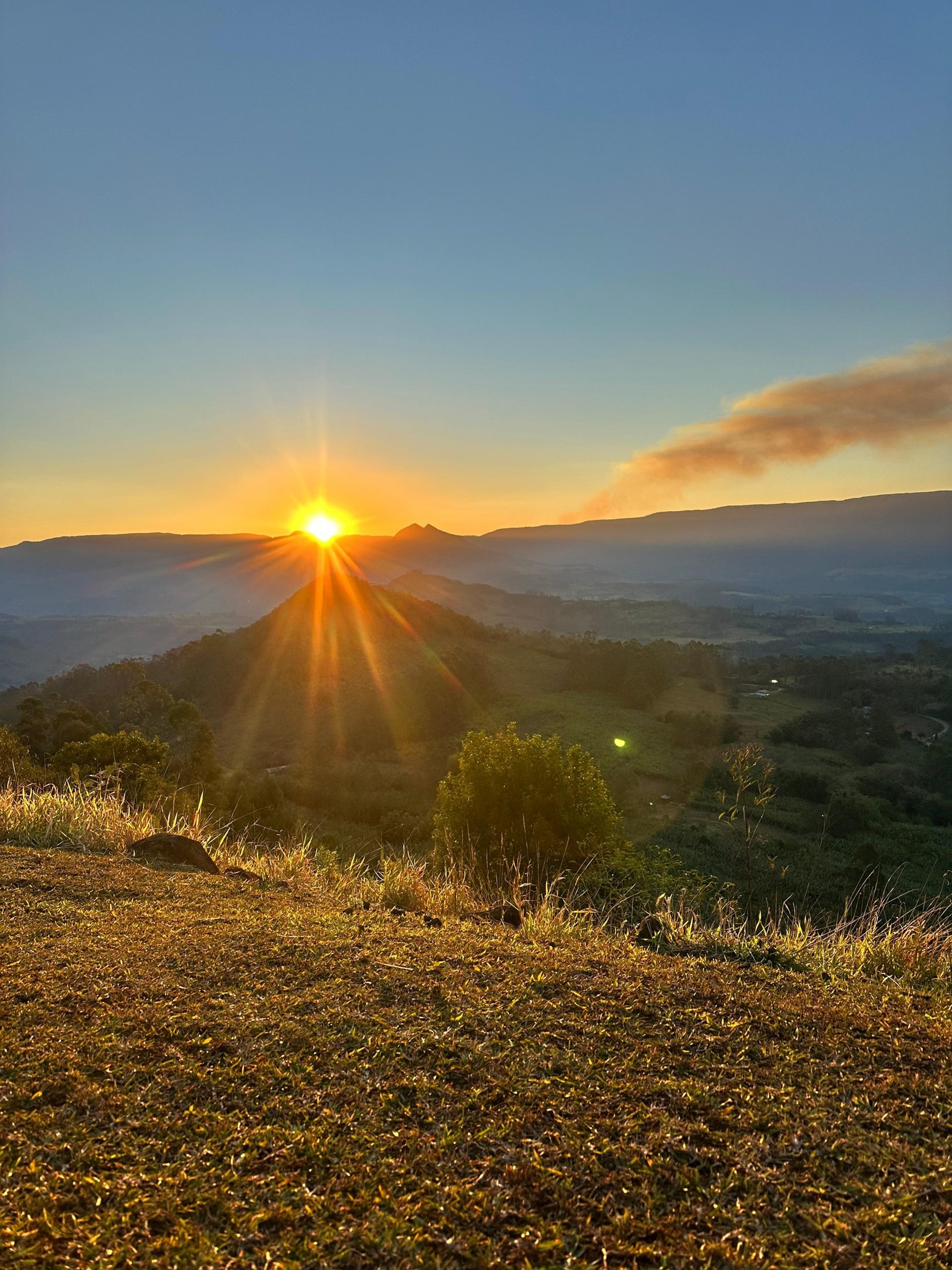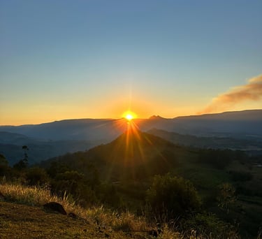 Um pôr do sol cinematográfico, com vista para os Canyons, o litoral e o Vale do Rio do Boi.
